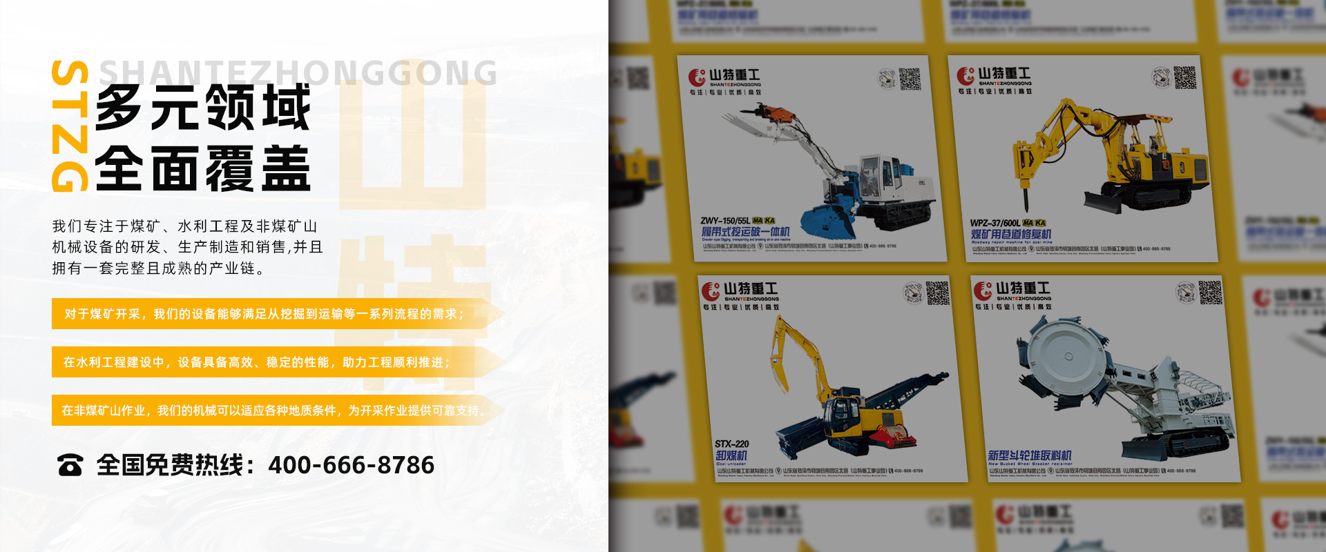 山東山特重工機(jī)械有限公司成立于2009年2月,是一家煤礦、水利工程及非煤礦山的機(jī)械設(shè)備研發(fā)、生產(chǎn)制造和銷售的自然人獨(dú)資企業(yè)。占地面積150余畝,產(chǎn)品主要有斗輪堆取料機(jī),扒渣機(jī),銑挖機(jī),巷道修復(fù)機(jī),電動(dòng)挖掘機(jī),卸煤機(jī),挖破運(yùn)一體裝載機(jī),翹毛臺(tái)車等,八大系列20余個(gè)品種,主要用于煤礦及非煤礦山、水利工程、鐵路修建及隧道、涵洞的開挖、火車港口貨物的裝卸、轉(zhuǎn)運(yùn)、堆碼等領(lǐng)域。國(guó)內(nèi)市場(chǎng)覆蓋28個(gè)省市自治區(qū)。